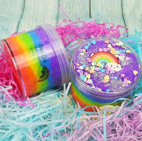• The Lavender Dreams slime features a rainbow base for a burst of fun colors.